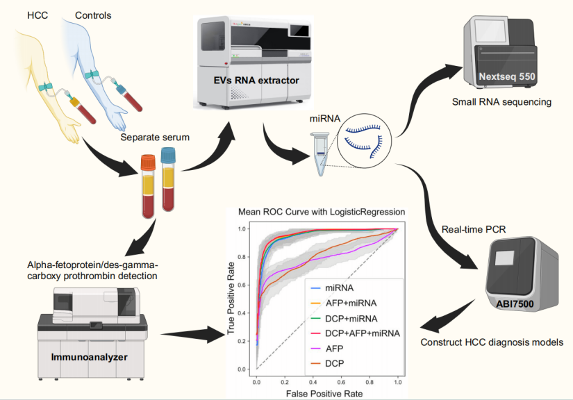 綜上所述,基于miRNA和AFP特征的HCC分類模型實現(xiàn)了精準診斷,標志著肝癌早期篩查領域的重大突破。肝癌外泌體miRNA產品以其高度準確性和非侵入性,為臨床診斷帶來了新的希望,助力全球肝癌患者獲得更精準的治療。這一研究成果不僅推動了肝癌研究與臨床實踐的進展,也為實現(xiàn)更有效的早期篩查和治療方案奠定了堅實基礎。